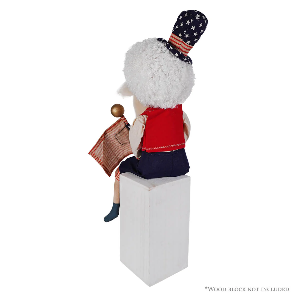 One of the most delightful features of Samuel Liberty is his floppy stuffed fabric arms and legs, allowing you to pose and arrange him in various patriotic stances. Whether seated on a doll chair or perched atop a small display block (both available at Traditions), Samuel Liberty adds a touch of patriotism to any space.